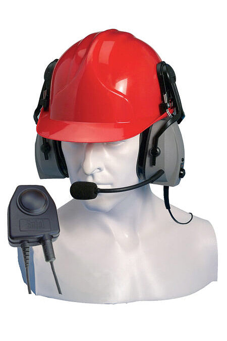 A heavy duty ear defender headset with high quality noise-cancelling boom microphone designed to connect to any safety hard hat via the supplied universal adapter. The headset provides both voice operated transmit and a large easy-to-use press to talk button with spring loaded clip, allowing the radio to be operated using a gloved hand or under clothing. We do stock a small range of common hard hat adapters which can be supplied in place of the universal adapter (please specify at time of ordering).